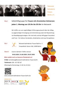 Wir freuen uns auf Anmeldungen unter info@netzwerk-behinderter-frauen.berlin oder Tel. 030 617 09 168